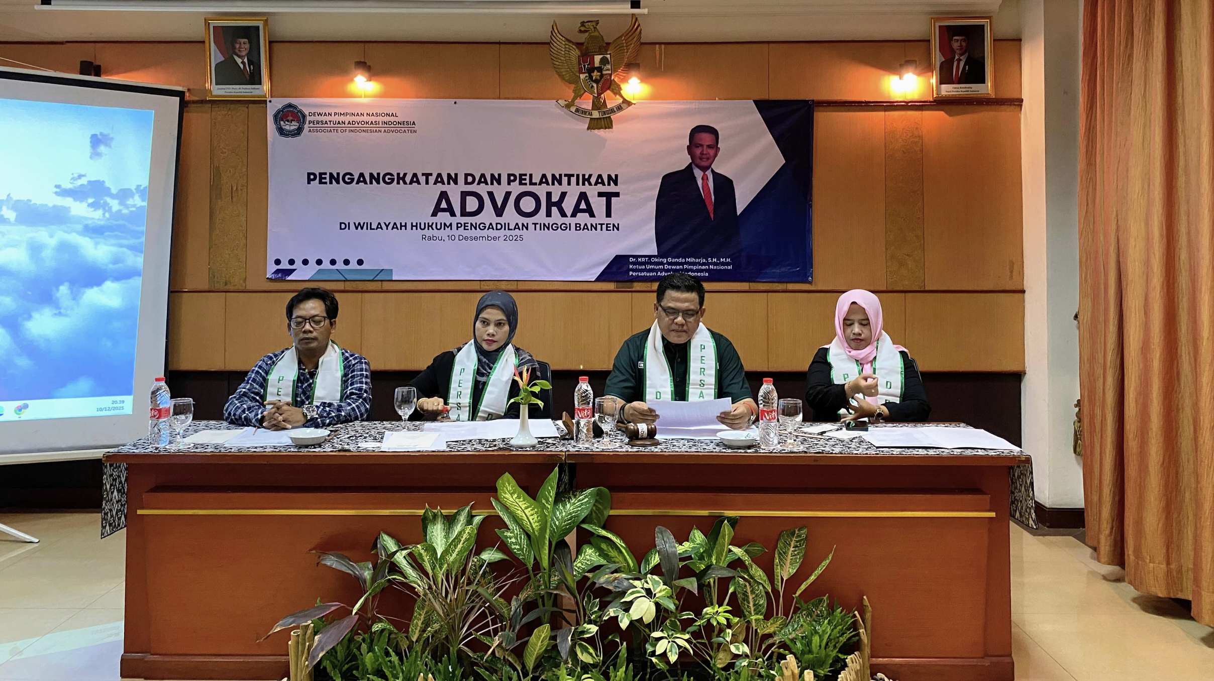 Ketua Umum Dewan Pimpinan Nasional Persatuan Advokasi Indonesia (DPN PERSADIN), Dr. KRT Oking Ganda Miharja, SH. MH, menyampaikan apresiasi kepada Pengadilan Tinggi Banten yang telah memfasilitasi proses pengambilan sumpah dengan baik. Ia menegaskan bahwa PERSADIN terus berkomitmen menyiapkan sumber daya advokat yang kompeten, beretika, dan siap mengabdi bagi masyarakat.