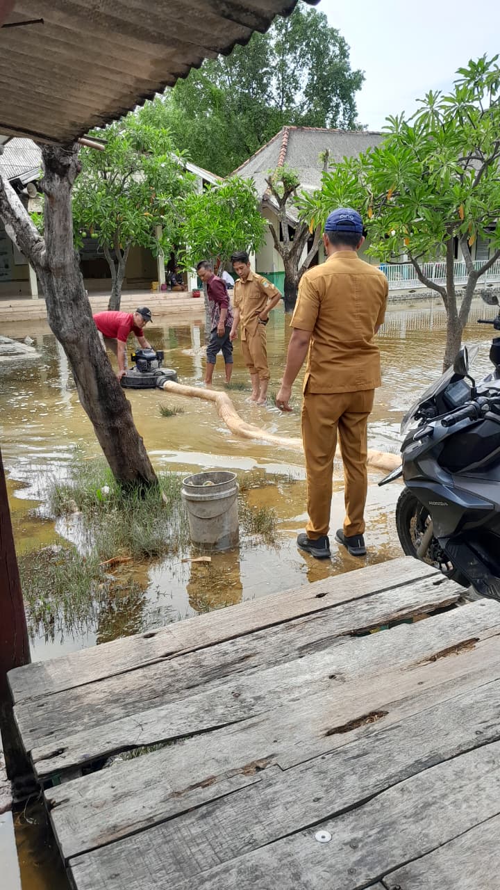 “Syukur Alhamdulillah sekarang sudah kering, dipompa menggunakan Pompa Apung portable sehingga anak – anak besok sudah dapat bersekolah kembali,” paparnya.