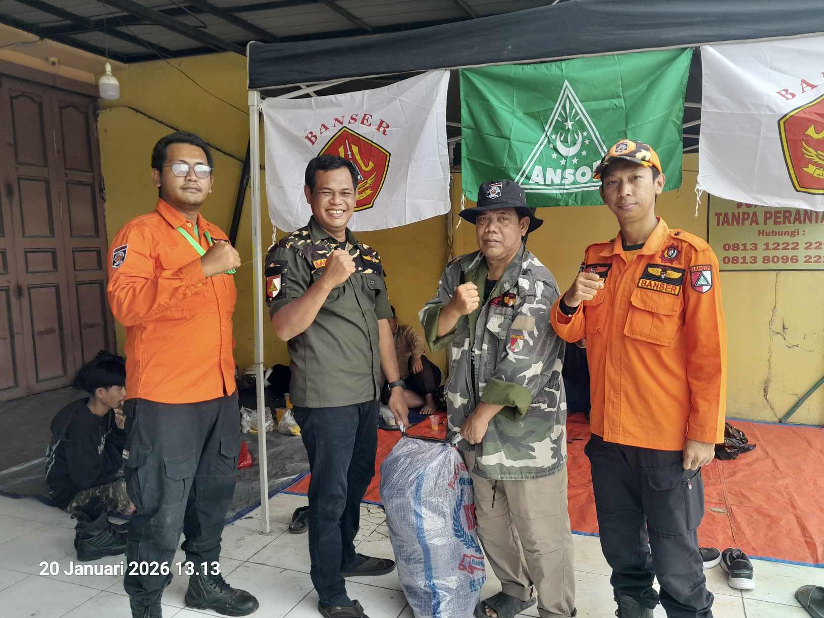 Kabupaten Bekasi, JEJAKHUKUM.net – Bentuk kepedulian sosial, Pengurus Anak Cabang (PAC) Gerakan Pemuda (GP) Ansor Kecamatan Cikarang Utara membuka posko banjir di Jalan Gatot Subroto, Kampung Kali Ulu, Desa Karangraharja, Kecamatan Cikarang Utara, Kabupaten Bekasi. Pada Selasa (20/01/26).