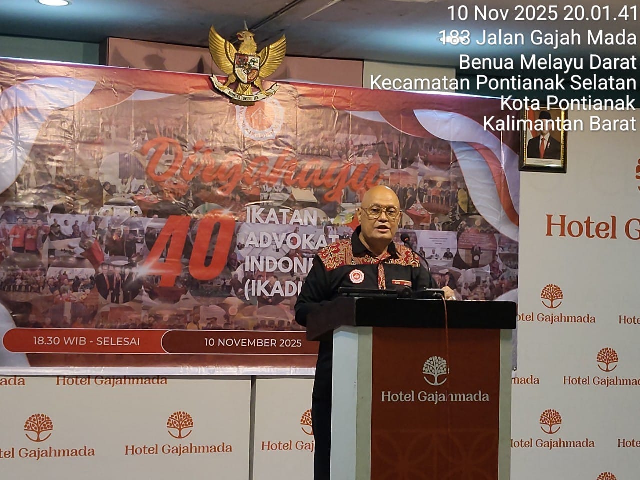 Pontianak, Kalbar-Senin 10 November 2025 – Dalam rangka peringatan Hari Ulang Tahun ke-40 Ikatan Advokat Indonesia (IKADIN) pada Senin, 10 November 2025, IKADIN Kalimantan Barat menggelar pertemuan dan syukuran di Hotel Gajah Mada, lantai 6, Pontianak.