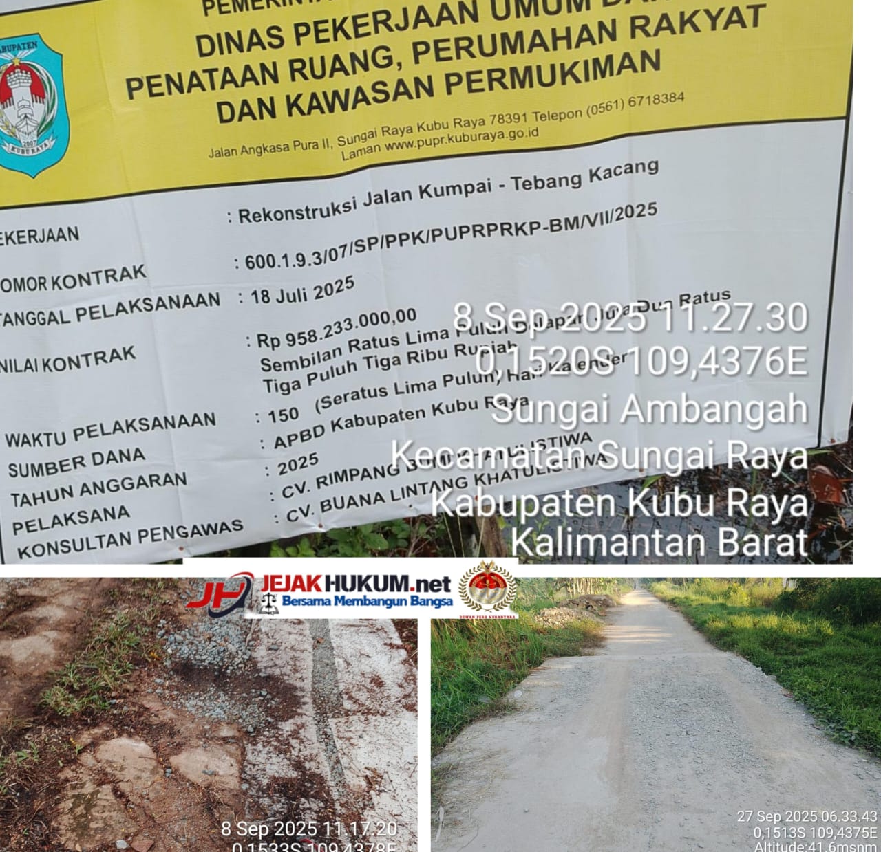 Kubu Raya – Ketua Dewan Pimpinan Cabang Lembaga Investigasi Negara (LIN) Kubu Raya, Nurjali S.Pd.I, angkat bicara terkait pembangunan jalan Kumpai–Tebang Kacang yang diduga sarat permainan oleh pihak pemborong, CV Rimpang Bumi Katulistiwa, serta konsultan CV Buana Lintang Katulistiwa.