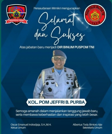 JAKARTA | JejakHukum.Net – Sosok pemimpin yang ketegasannya sangat dihormati dan disegani, Kol. POM Jeffri B. Purba resmi telah mengemban tugas baru sebagai Direktur Pembinaan Umum (Dirbinum) Puspom TNI, yang merupakan sebuah jabatan penting di Pusat Polisi Militer (Puspom) TNI yang membawahi pembinaan umum, termasuk koordinasi, administrasi, dan kegiatan-kegiatan umum Polisi Militer di seluruh jajaran TNI.