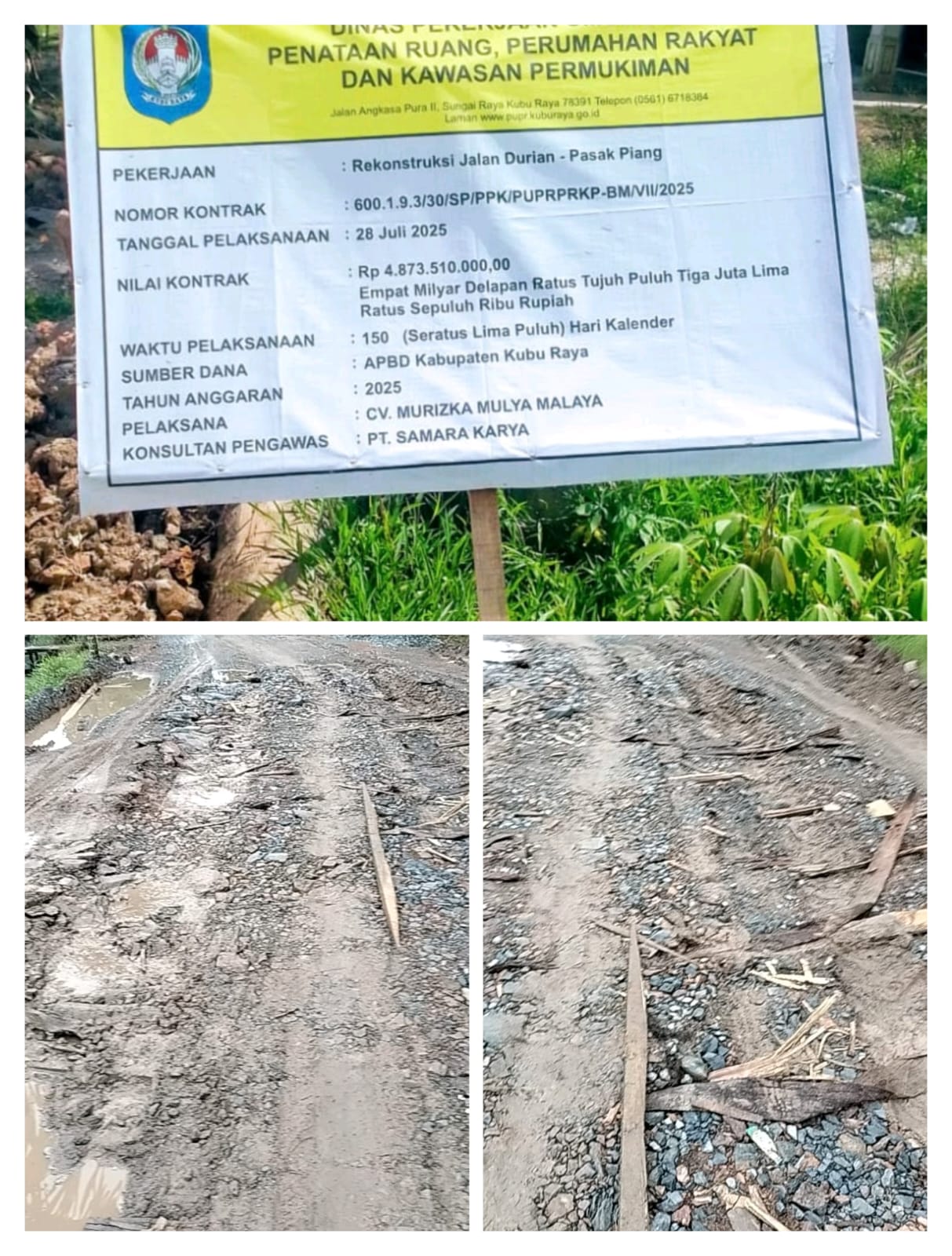 Pekerjaan Rekonstruksi Jalan Durian–Pasak Piang, Kecamatan Sungai Ambawang, Kabupaten Kubu Raya menjadi sorotan masyarakat setelah ditemukan sejumlah kejanggalan teknis dan dugaan pelanggaran aturan keselamatan kerja di lapangan.